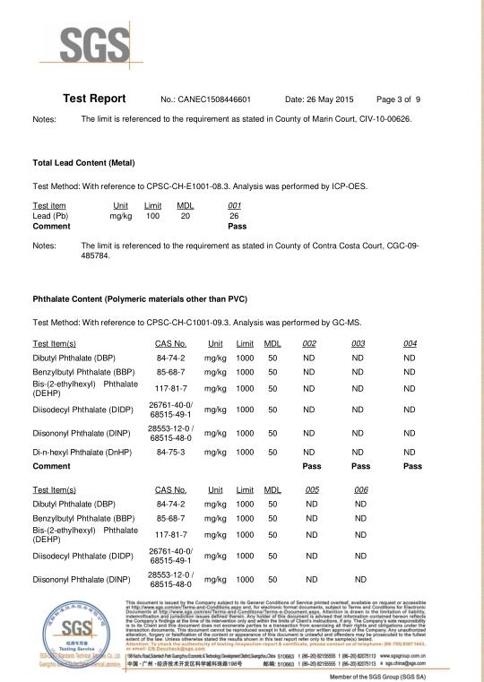 深圳豪順拉鏈《加州65鉛和鄰苯測試報告》第3頁